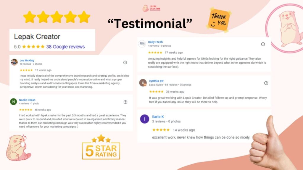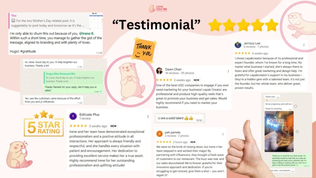We usually work with small businesses across Singapore, industry can be varies to F&B, service line, e-commerce & more, to create content, build brand presence, and support long-term growth through influencer collaboration, brand strategy and community marketing.