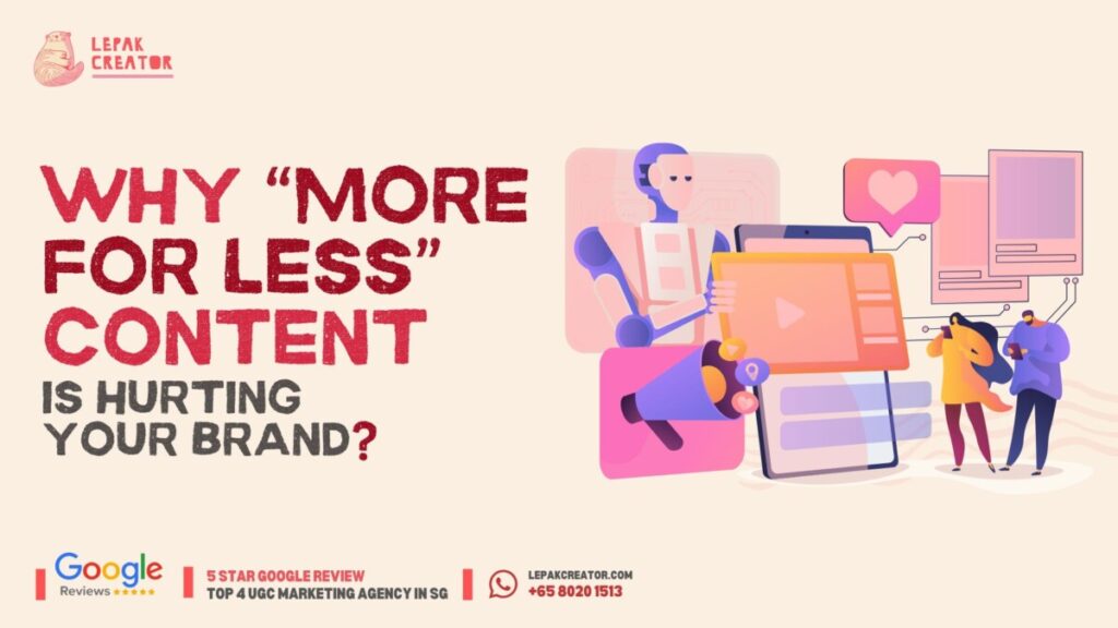 Let’s break down why “more for less” isn’t a strategy — and how Lepakcreator (an authentic UGC-driven branding & marketing agency based in Singapore) helps brands grow with purpose, alignment, and results.
